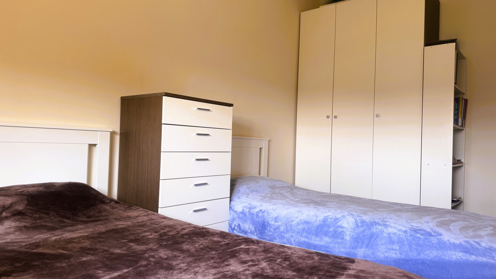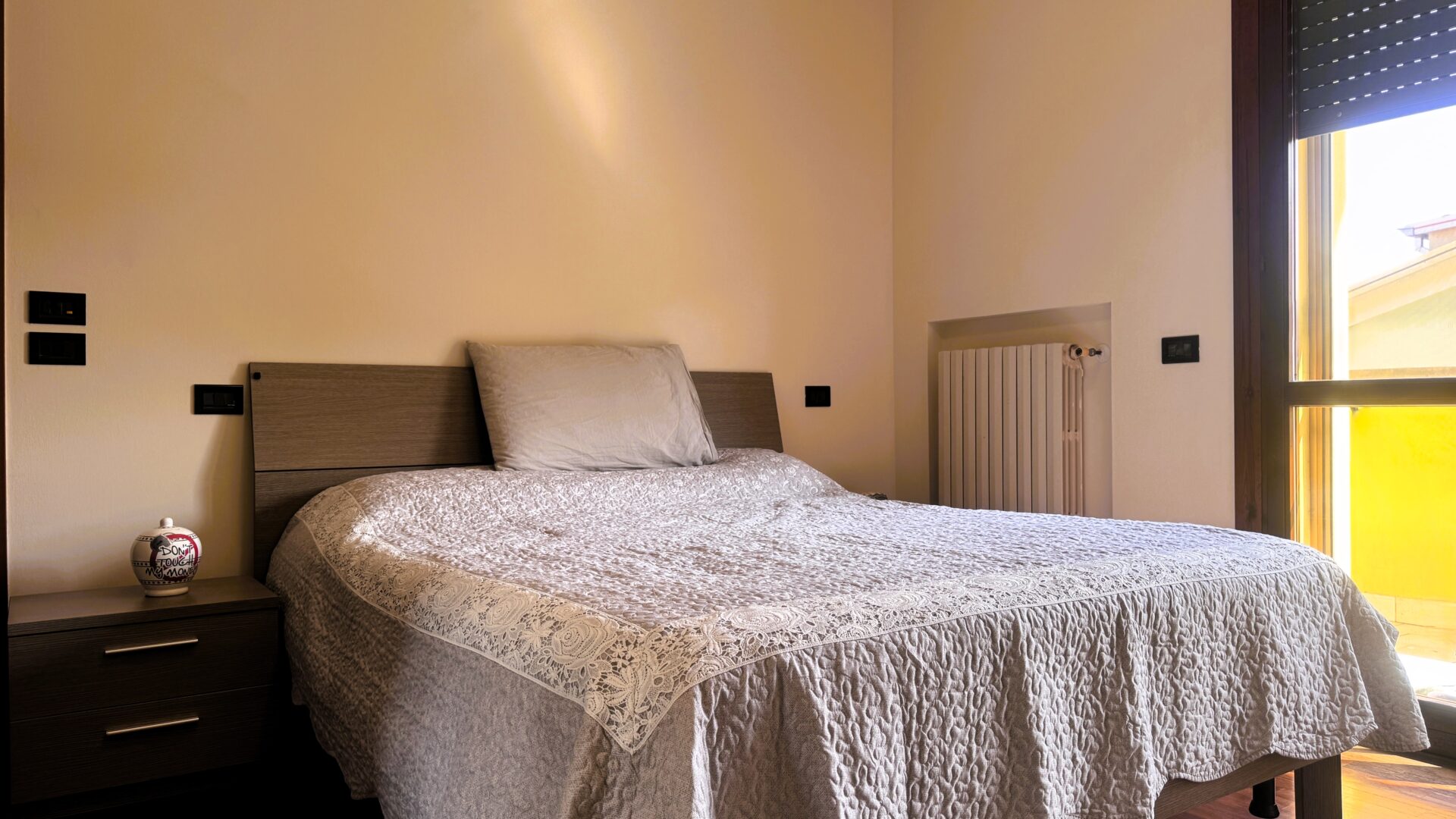 La zona notte è ben separata e si sviluppa lungo un corridoio che accompagna con ordine verso gli ambienti più intimi della casa, arricchito da un comodo armadio a muro, perfetto per ottimizzare gli spazi e mantenere tutto in ordine. La camera matrimoniale, con il suo balcone, regala luce e respiro; la camera doppia e la singola offrono spazio e versatilità, perfette per figli, studio o ospiti.