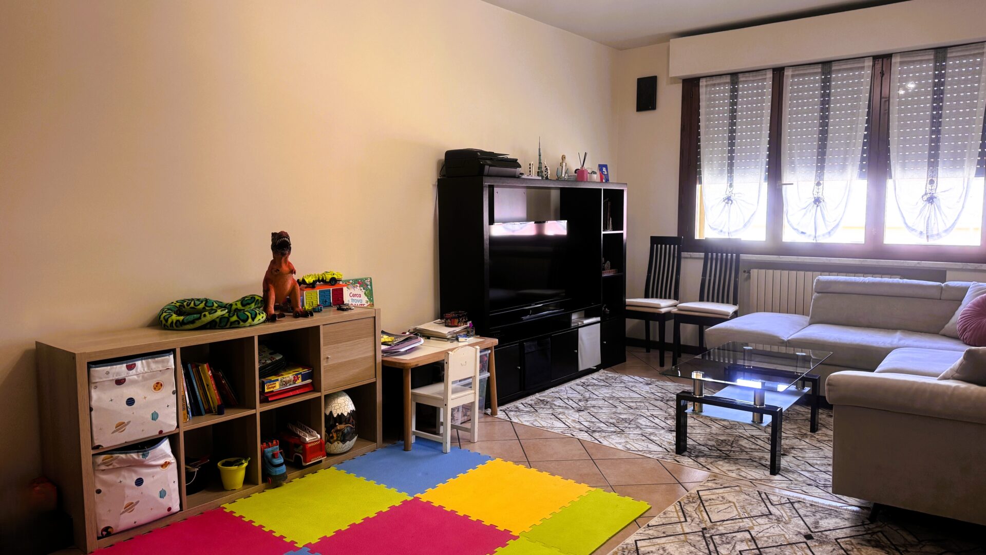 Con i suoi 125 mq, questa casa è pensata per chi ha bisogno di spazio senza rinunciare all’armonia degli ambienti. La tripla esposizione garantisce luce naturale durante tutto l’arco della giornata.