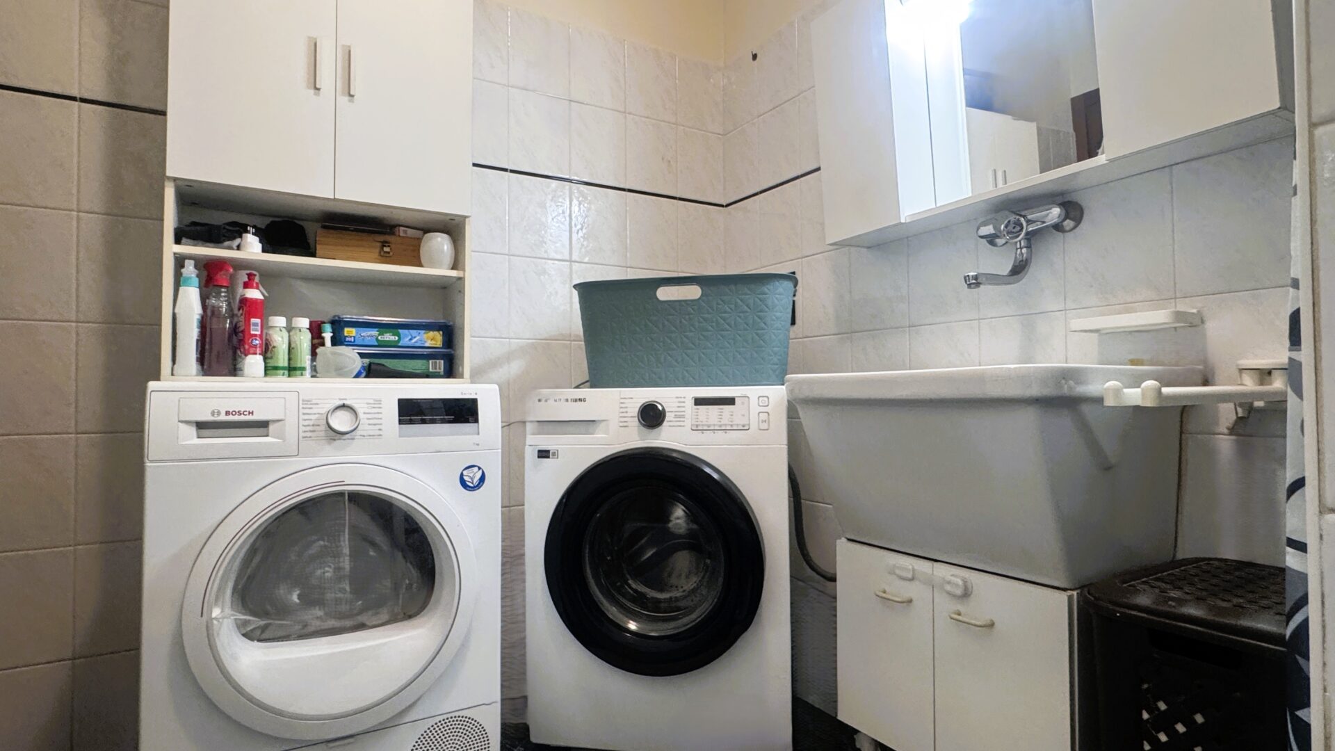 I due bagni sono un valore aggiunto concreto: uno principale con vasca, pensato per il relax, e un secondo bagno lavanderia con doccia, pratico e indispensabile nella gestione quotidiana.