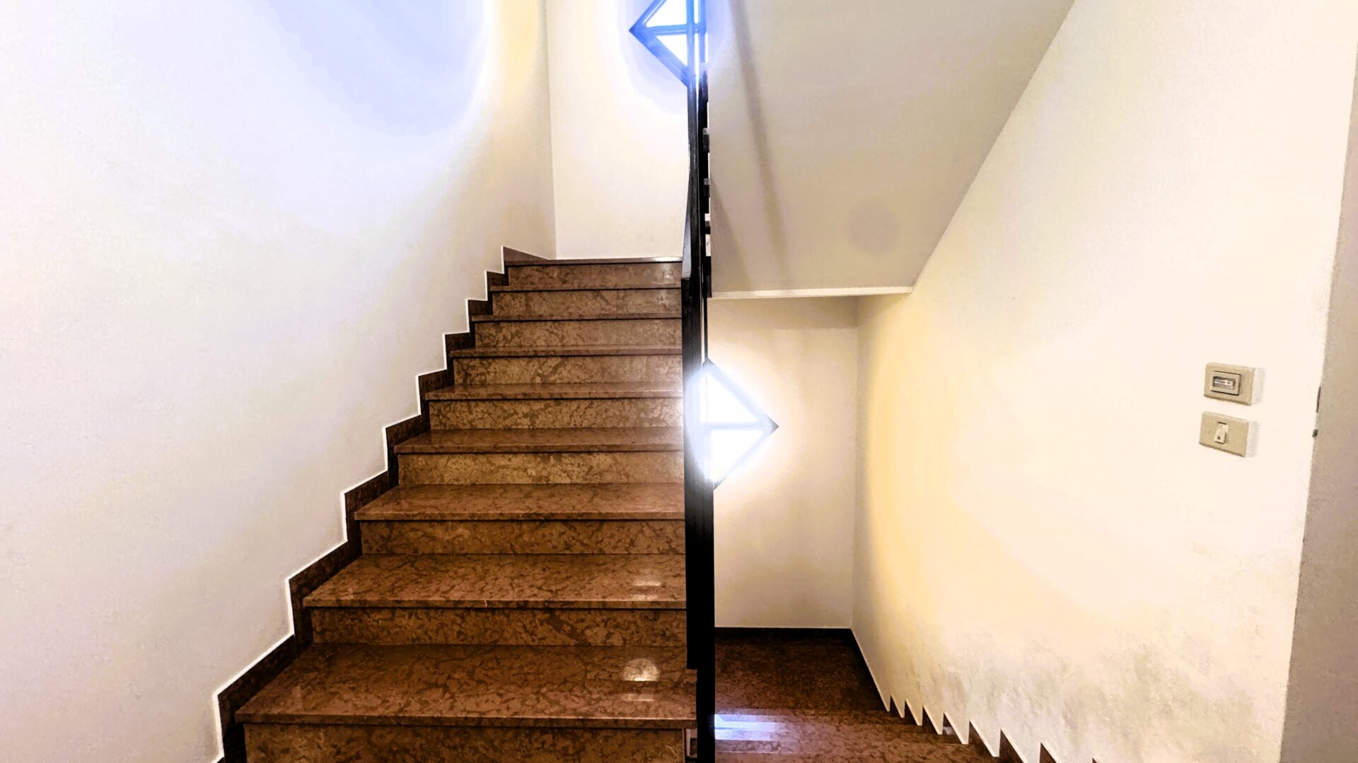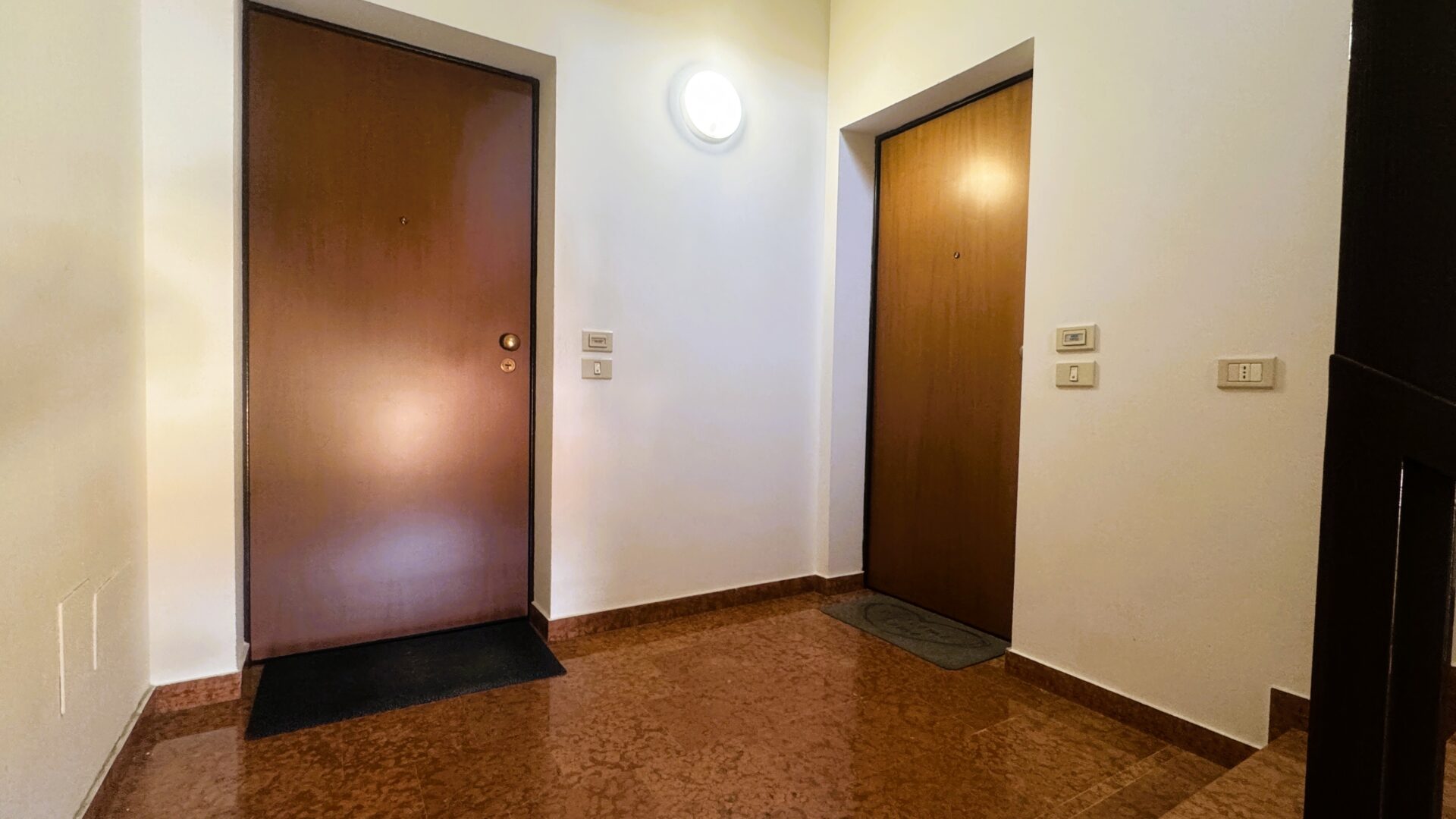 L’appartamento si trova al secondo ed ultimo piano di una palazzina costruita nel 1995, composta da poche unità. Salendo le scale si percepisce già la quiete che caratterizza l’intero immobile.