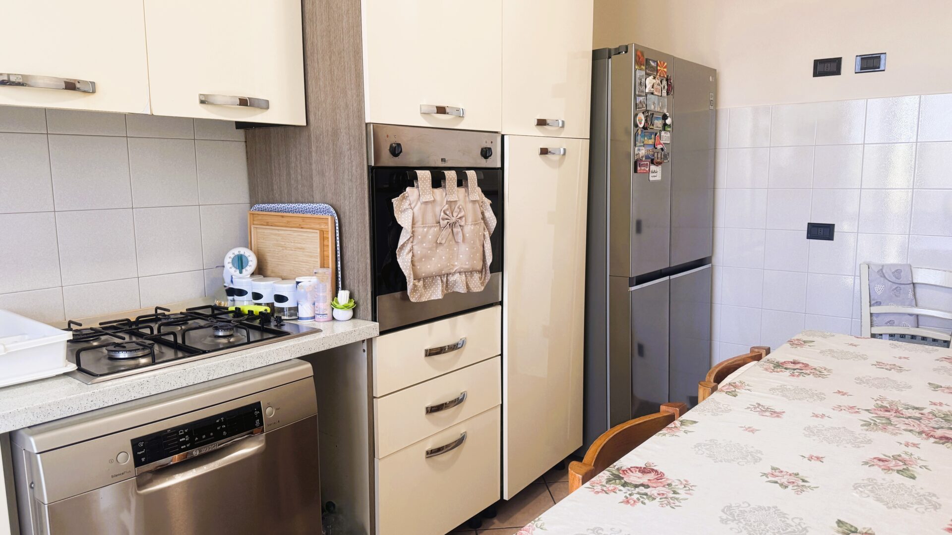 Appena entrati, si viene accolti da un soggiorno luminoso, uno spazio perfetto per i momenti in famiglia o per ritagliarsi attimi di relax. La cucina è abitabile, funzionale e ben organizzata, con accesso diretto a un comodo terrazzino: il luogo ideale per una colazione all’aria aperta o per concedersi una pausa a fine giornata.