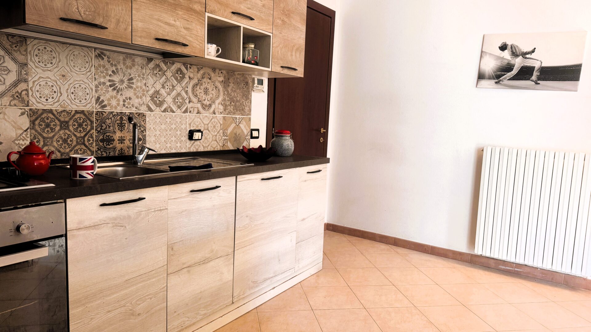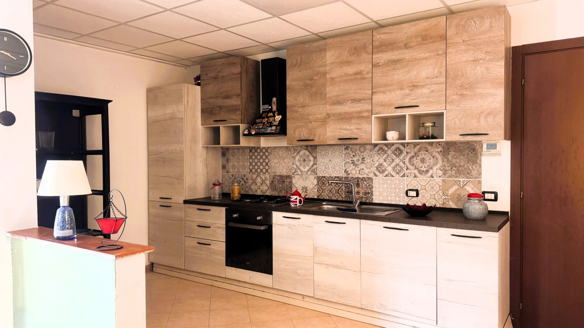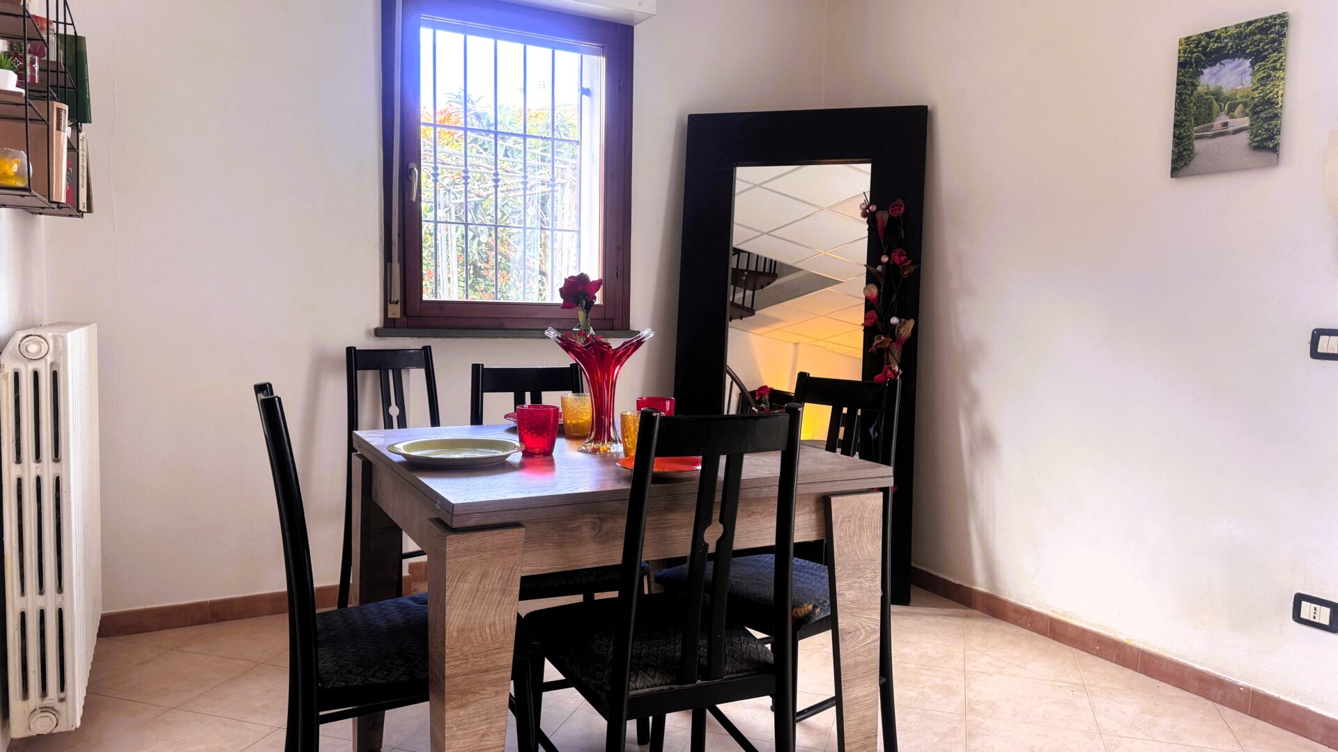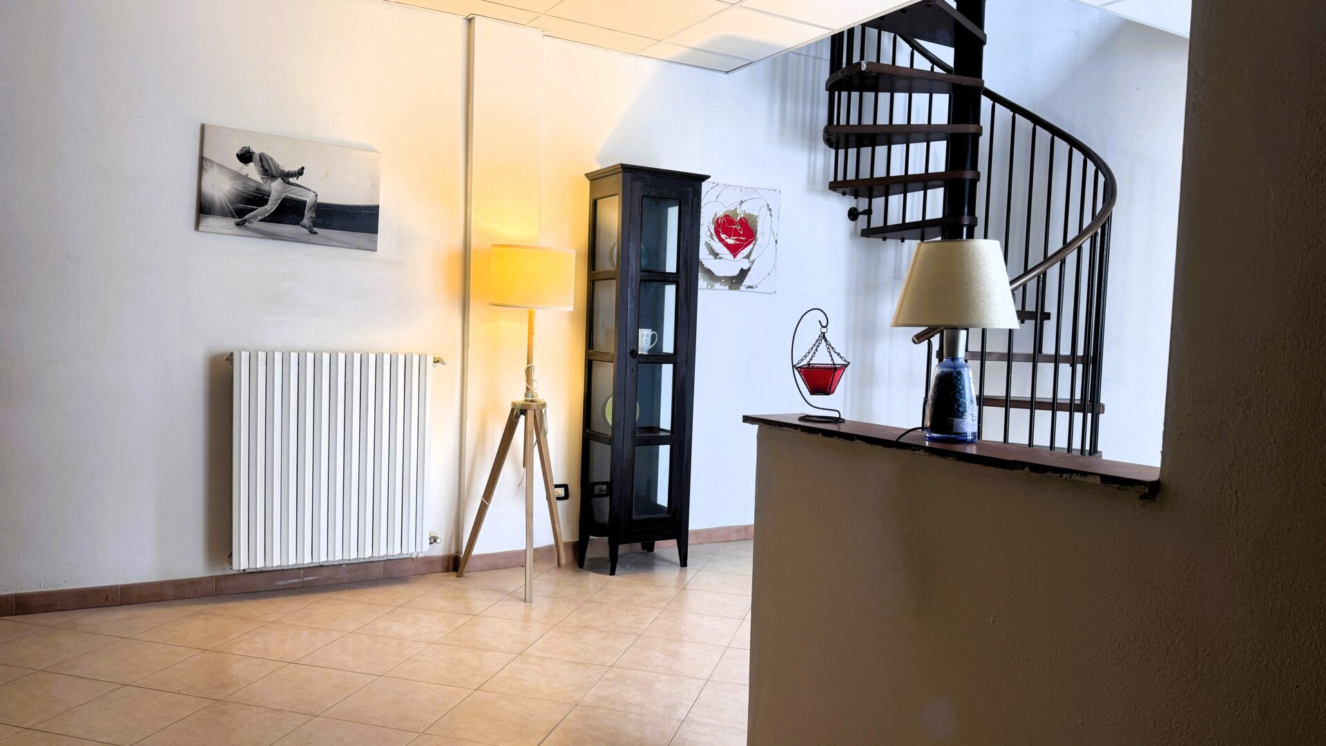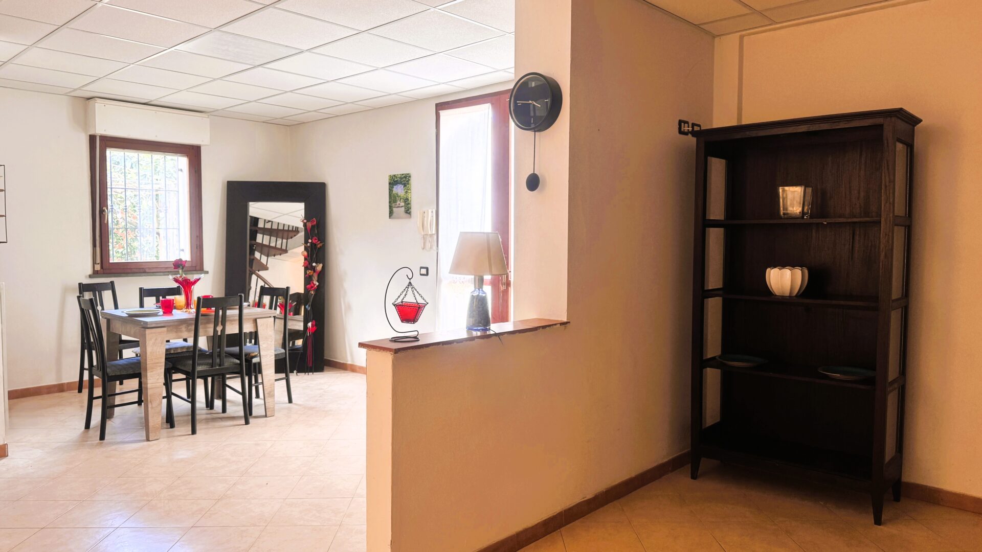 L’ingresso è indipendente, un plus che fa la differenza. Si accede direttamente alla zona giorno, dove sala e cucina a vista convivono in un ambiente accogliente e ben organizzato. La luce entra dalla porta a vetri, protetta da scuri blindati. A completare il piano terra, un pratico ripostiglio-lavanderia che rende la gestione degli spazi ancora più funzionale.
