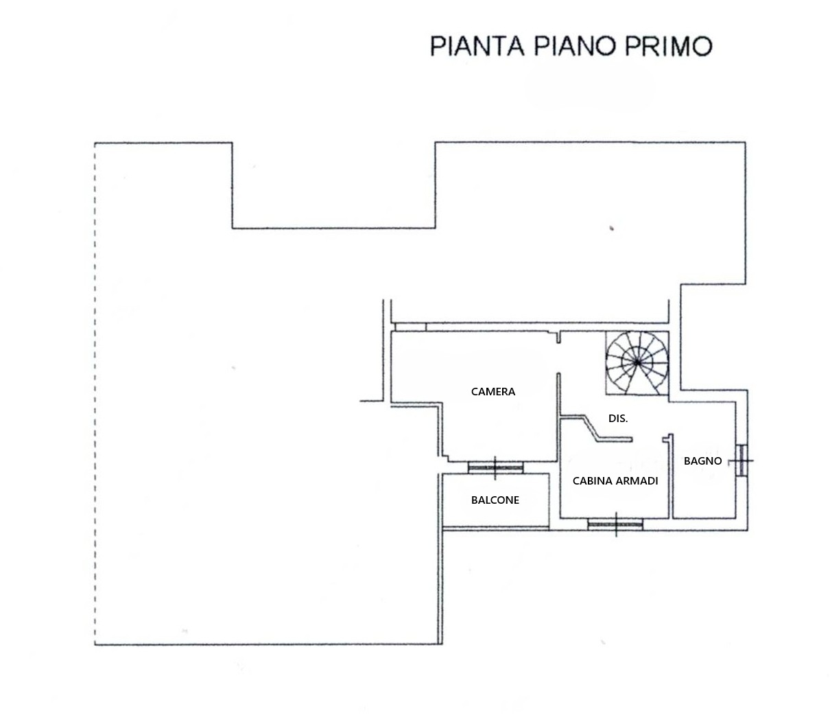 Salendo al primo piano attraverso una scala a chiocciola, si entra nella zona notte: qui troviamo una camera con balcone, perfetta per concedersi un momento all’aria aperta, un’altra stanza ideale come cabina armadi e un bagno con vasca, pensato per rilassarsi a fine giornata.