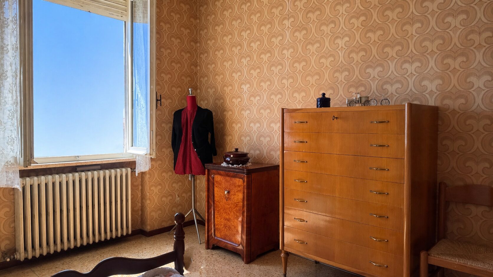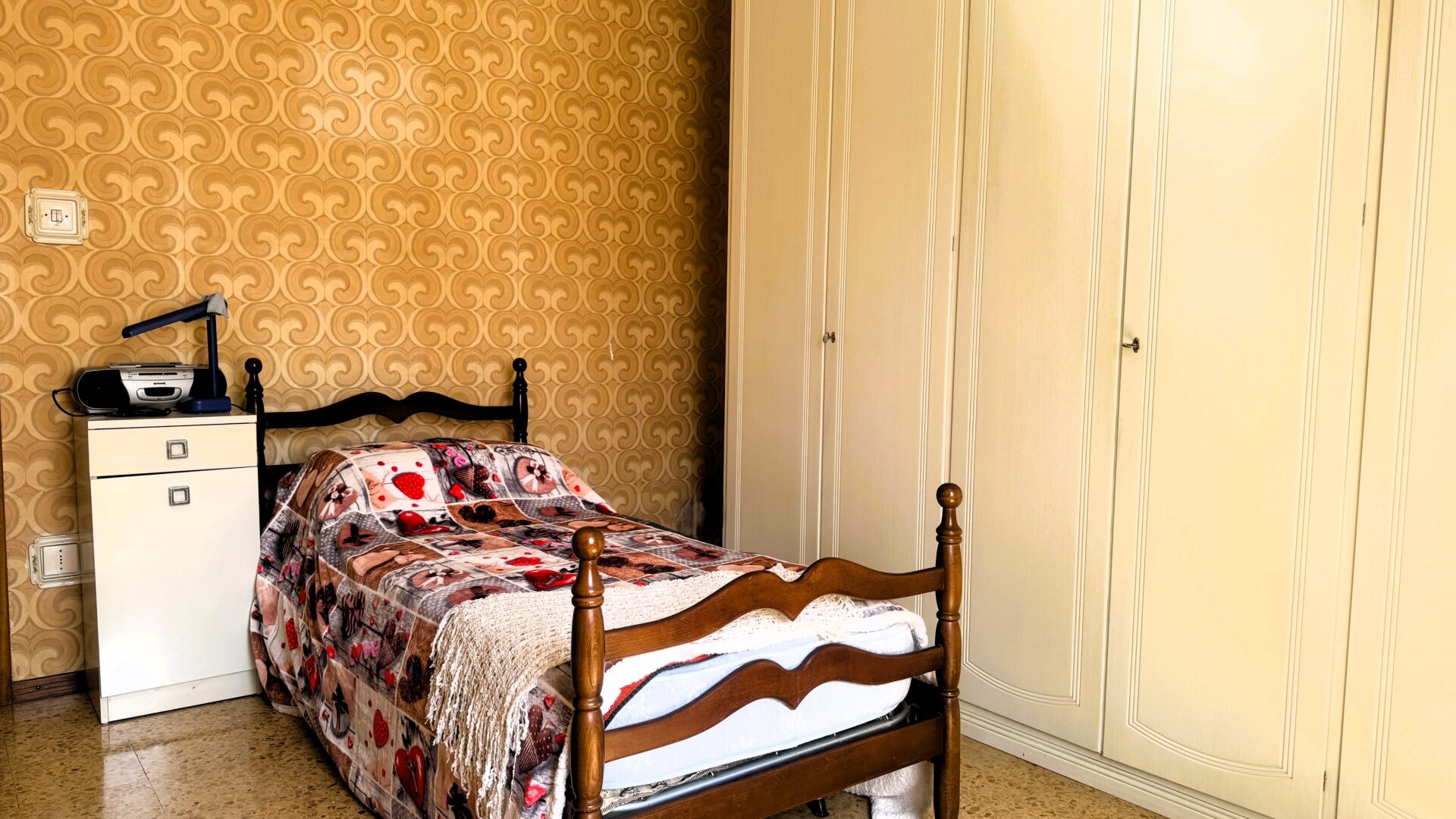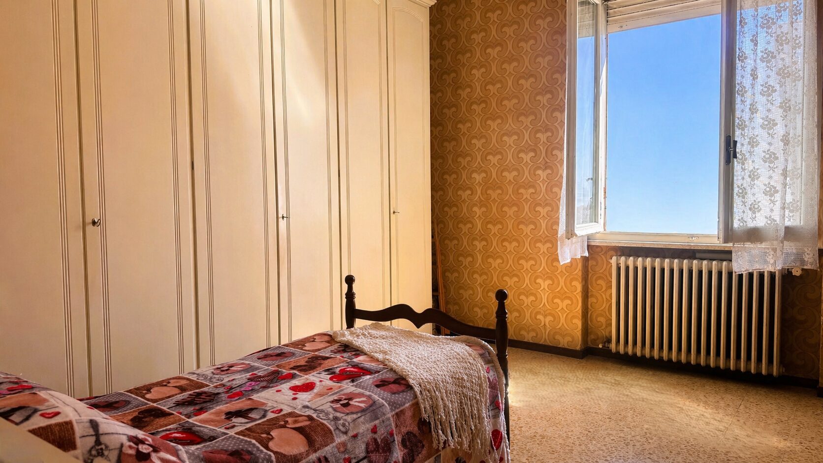 La zona notte è ben separata e raccolta: due camere matrimoniali, di cui una con balcone, un bagno con vasca rifatto negli anni ’90 e una stanza in più, preziosa, da trasformare secondo le proprie esigenze: studio, cabina armadi o secondo bagno.