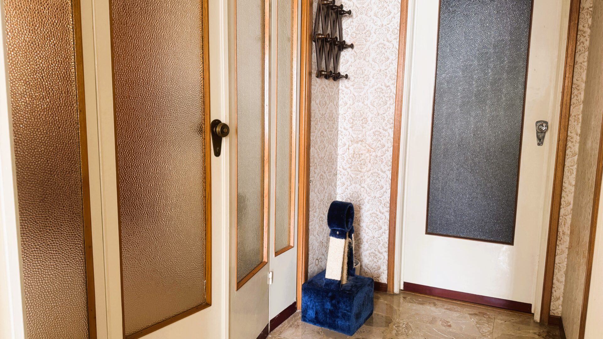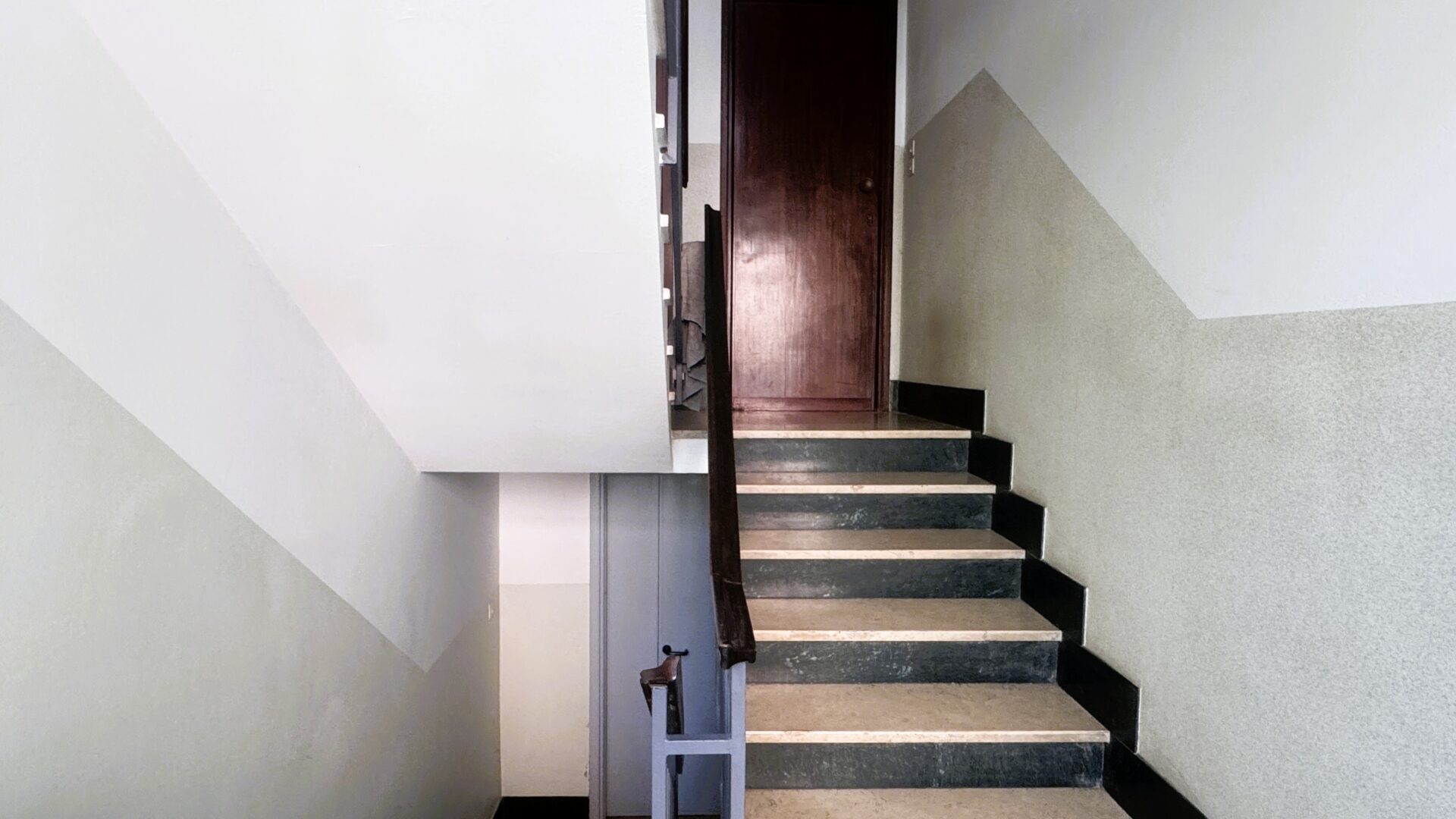 L’appartamento si trova al primo piano oltre rialzato di una trifamiliare degli anni ’60. Occupa l’intero piano ed è libero su quattro lati: una caratteristica che si percepisce subito, grazie alla luce che entra da ogni ambiente e alla sensazione di respiro che accompagna ogni stanza.