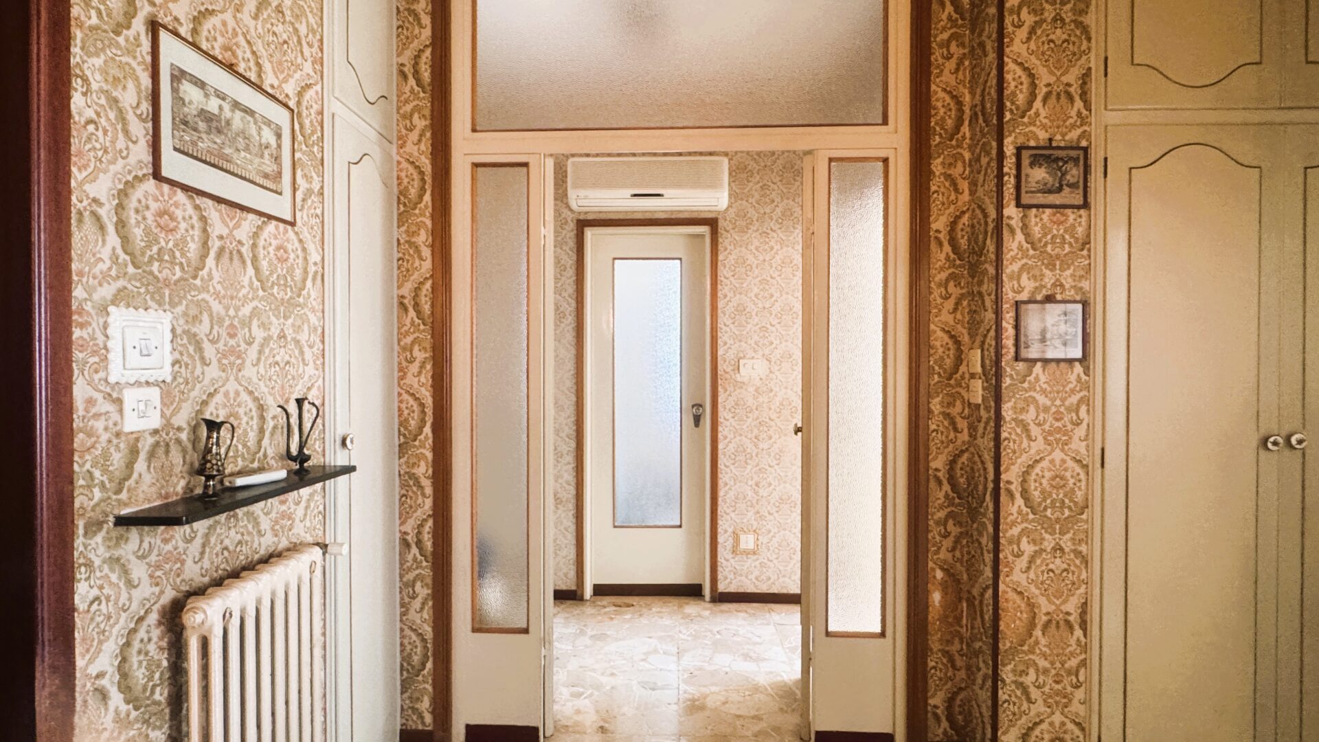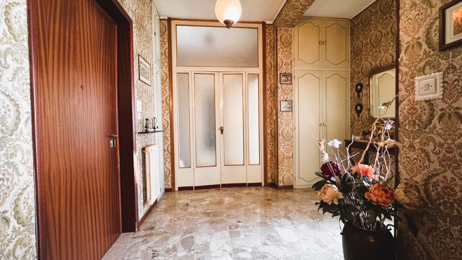 L’ingresso è ampio, accogliente, con armadi a muro che raccontano una casa pensata per essere vissuta davvero, e divide in modo naturale la zona giorno dalla zona notte.