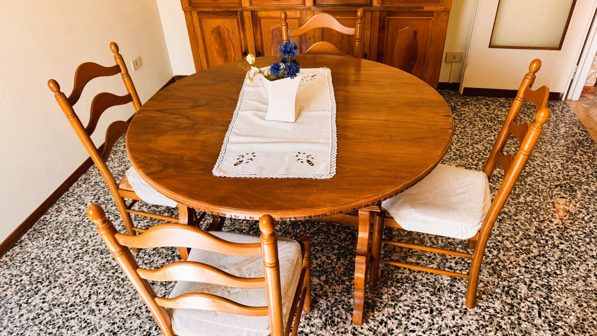 Parliamo di circa 140 mq, con una distribuzione degli spazi che oggi definiremmo “di una volta”, ma incredibilmente attuale per chi cerca ambienti veri, separati e vivibili.