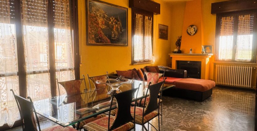 La zona living è ampia, luminosa e accogliente: il soggiorno, impreziosito dal camino, è illuminato da una porta finestra e due finestre che regalano luce naturale durante tutta la giornata e accesso al balcone. Accanto, la sala da pranzo, anch’essa con uscita sullo stesso balcone, è perfetta per momenti conviviali. Il cucinotto, raccolto e funzionale, resta collegato ma discreto, così da mantenere separata la zona operativa dalla zona pranzo.