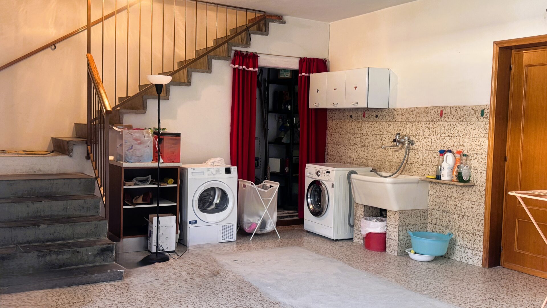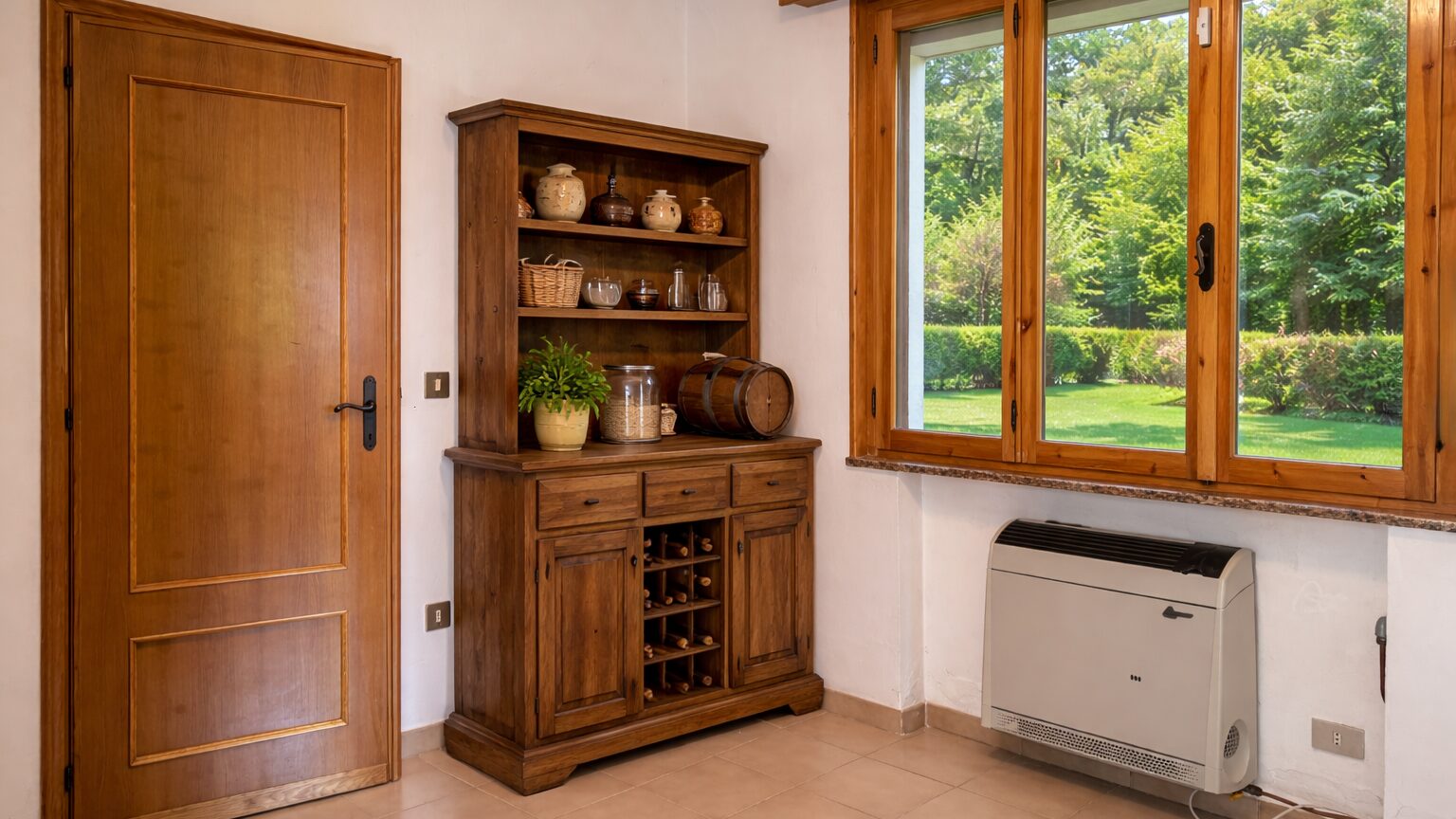 Al piano terra, la casa sorprende ancora: ambienti accessori che fanno davvero la differenza. Troviamo una taverna con cucina, una sala hobby, la cantina e la lavanderia. Spazi che possono essere vissuti come zona relax, lavoro o accoglienza… ma che, con semplicità, possono trasformarsi in un secondo appartamento indipendente. Una soluzione perfetta per un genitore, un figlio grande, per chi desidera tenere vicino un familiare, mantenendo autonomia e privacy.