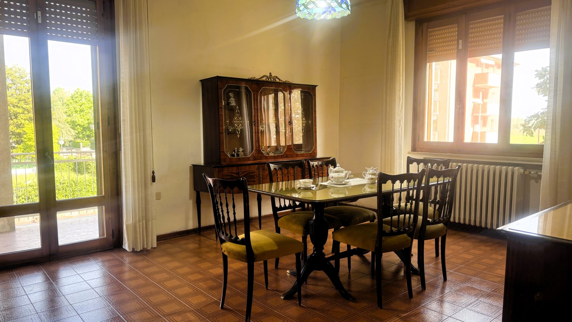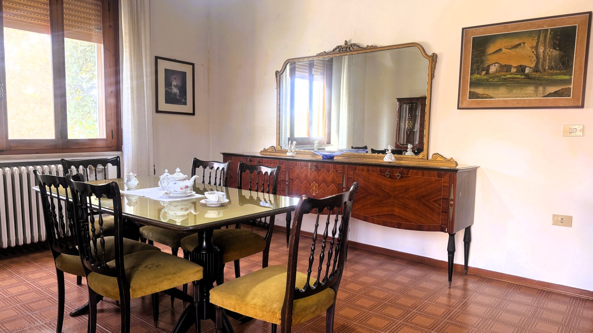 Questa abitazione degli anni ’70, solida e ben distribuita, si sviluppa su una superficie complessiva di 216 mq e offre ambienti generosi, luminosi e versatili, difficili da trovare nelle costruzioni più recenti.